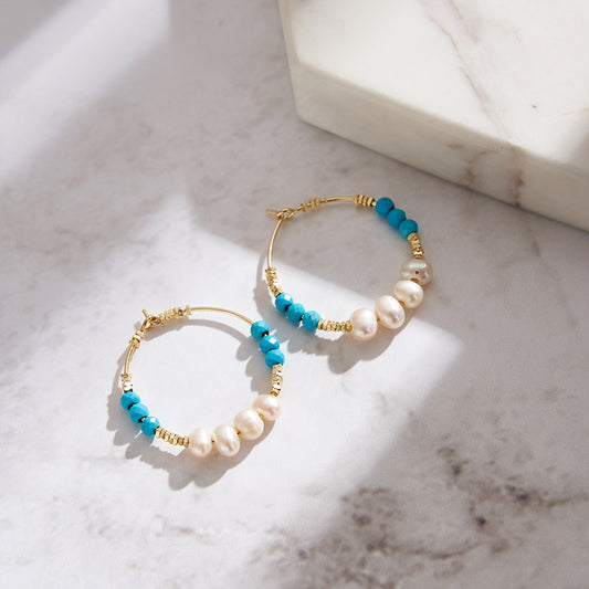 Natural Turquoise Dangle Earrings Vintage 925 Sterling Silver Irregular Gemstone Drop