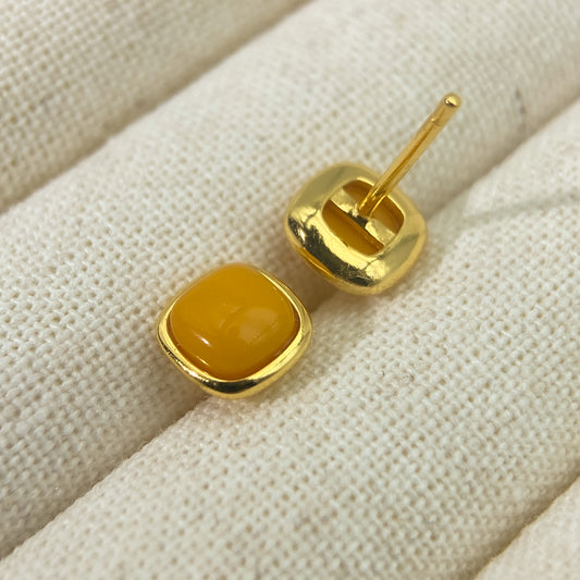 Natural Yellow Amber Earrings - 925 Sterling Silver Gemstone Studs