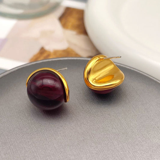 Natural Red Agate Stud Earrings - Small Matte Vintage Gemstone Studs