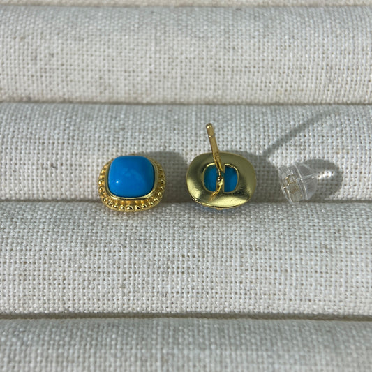 Turquoise Stud Earrings - Small Vintage Square Gemstone Studs